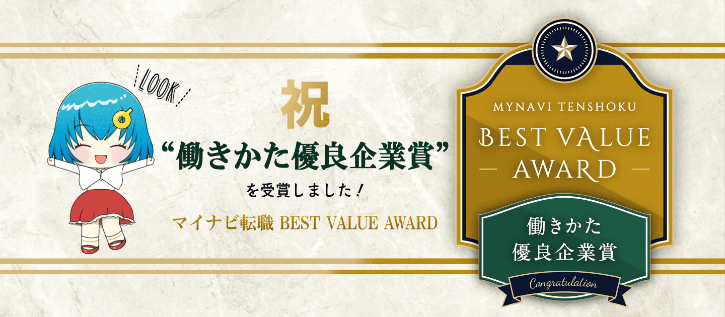 『マイナビ転職 BEST VALUE AWARD』の『働きかた優良企業賞』を受賞🎊