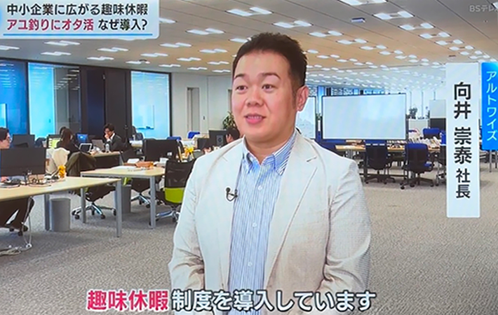 番組では、弊社の独自の福利厚生制度である「趣味休暇」が取り上げられ、社員一人ひとりが趣味を楽しむことでリフレッシュし、より良い働き方を実現している事例として紹介されました。
