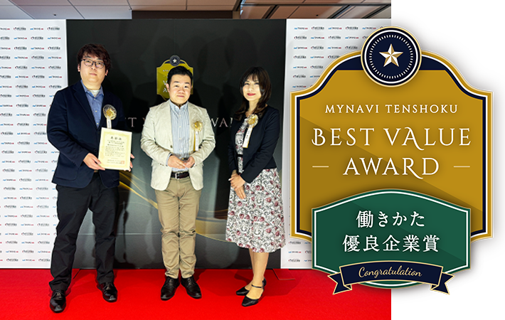 2025年1月14日、株式会社マイナビが運営する総合転職情報サイト『マイナビ転職』主催、厚生労働省 後援の「マイナビ転職BEST VALUE AWARD」において「働きかた優良企業賞」を受賞しました。